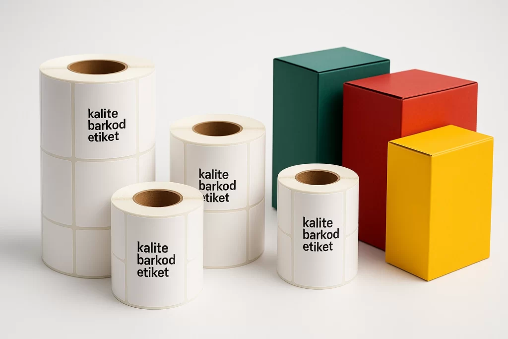 Kalite Barkod Etiket, her ihtiyaca özel bu etiketleri farklı ebat ve yapışkan seçenekleriyle kullanıcıya sunmaktadır.