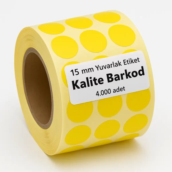 15 mm Sarı Yuvarlak Çap Daire şeklinde etiket.