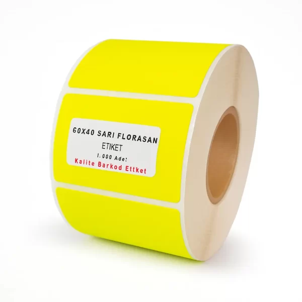 60mm x 40 mm ölçüsünde Sarı Florasan Etiket