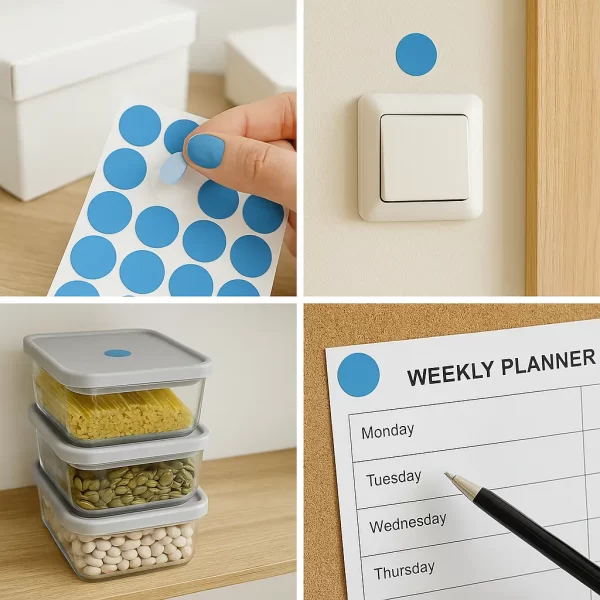 Ofislerde dosya klasörleri, depolarda ürün grupları, okullarda ise kitap ve defterlerde kullanılabilir. Mavi rengin güven ve düzen hissi vermesi sayesinde özellikle resmi belgelerde tercih edilir. Ayrıca hobi çalışmalarında ve kişisel kullanımda estetik bir dokunuş katar.