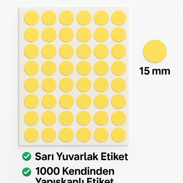 Yuvarlak Etiket 15 mm Sarı Renk