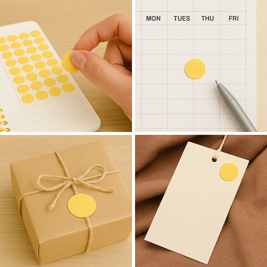 Ofislerde önemli belgeleri işaretlemek, depolarda öncelikli ürünleri belirtmek, mağazalarda kampanya ürünlerini vurgulamak için uygundur. Eğitim ortamında öğrencilerin başarılarını ödüllendirmede kullanılabilir. Sarı renk, dikkat ve enerji hissi verdiği için öne çıkarmak istediğiniz her yerde kullanılabilir.