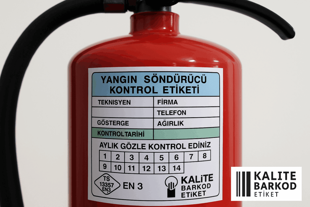 Bu sayede etiket hem işlevsel kalır hem de yangın anında net bilgi sunar.